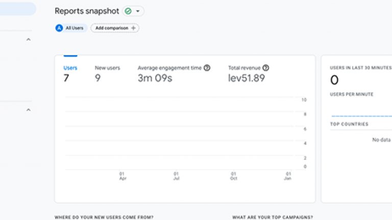 Както казахме в началото, не трябва да очаквате същата среда, след като GA4 е нова версия на Analytics. В началото няма да виждате всички репорти, защото повечето от тях се генерират само когато започнете да проследявате събития.