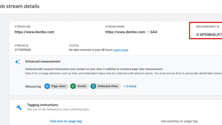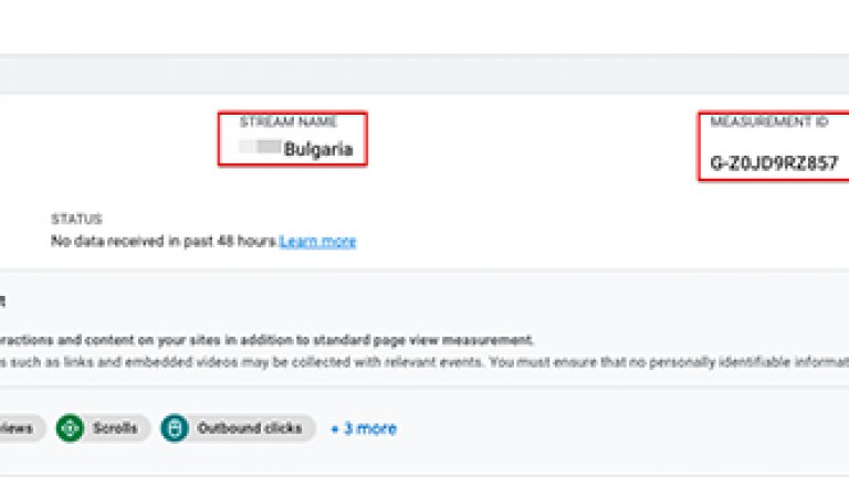 Ако имате настроен GA4 и трябва да проследявате данни, тогава measurement ID на акаунта започва с "G-".
