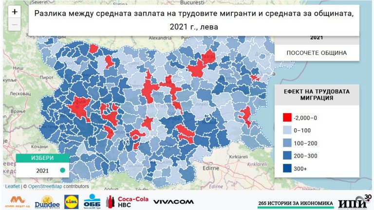 Анализът на насочеността на трудовата миграция и ефектът ѝ върху заплатите на заетите сочи, че тя води до повишение на заплатите на работещите в 241 от 265-те общини в страната, a приходящите работници генерират трудов доход от общо 661 млн. лв. месечно.