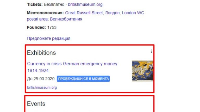 Ще получите по-голяма видимост и ако се възползвате от всички възможности на Google My Business - на илюстрацията по-долу се показва когато обекта е обявил провеждани събития.