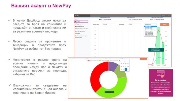 - промените и тенденциите в продажбите си през NewPay за избрани периоди от време;